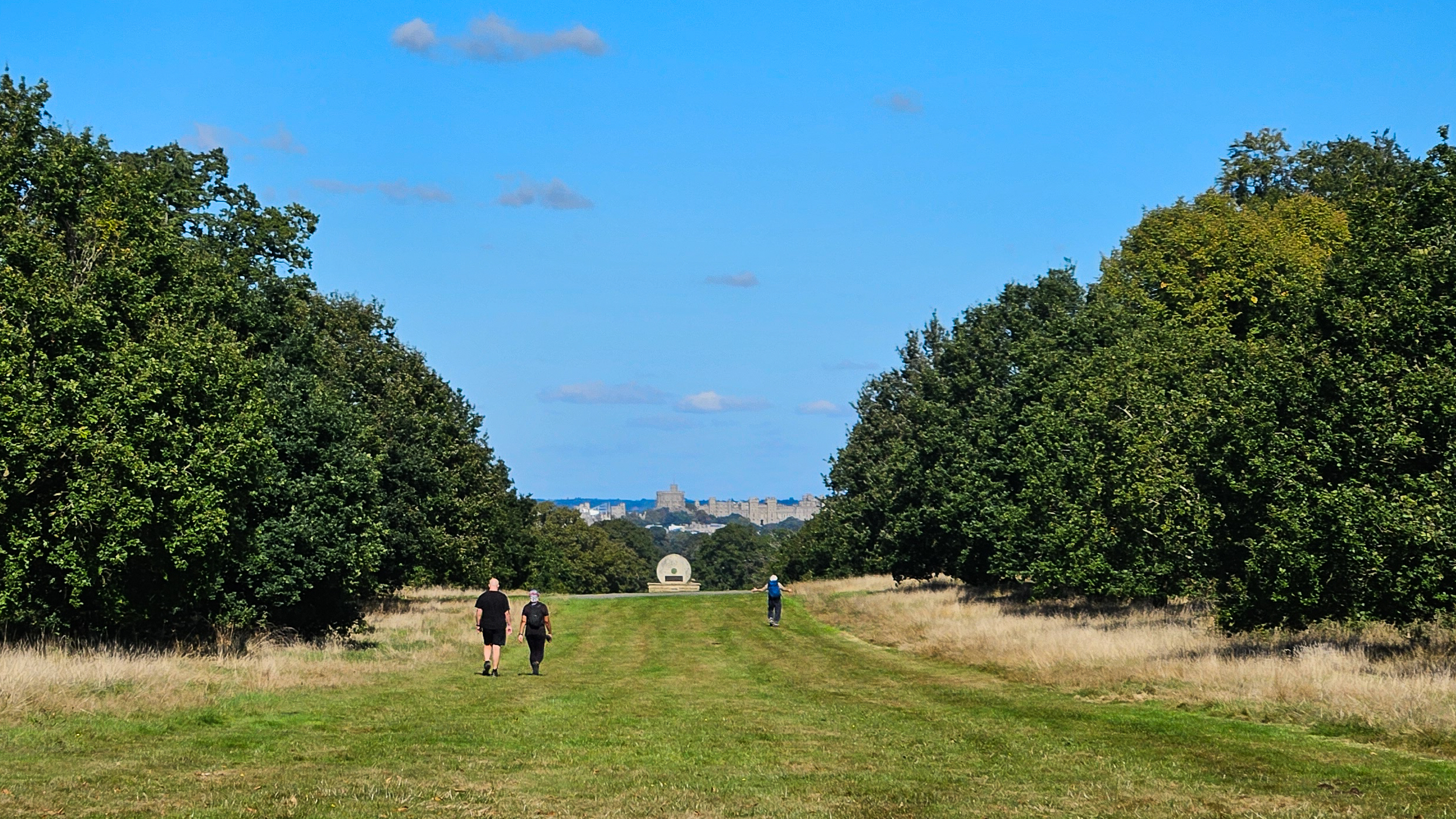 There is a steep climb from Old Windsor to Bishops Gate, but it is on a quiet public road. The return from the park to Windsor on NCN Route 4 is off-road, but not as steep.